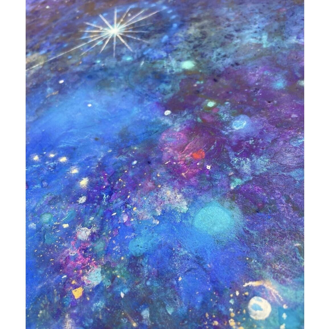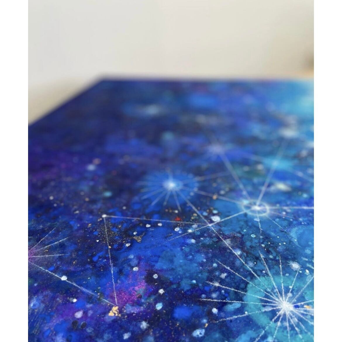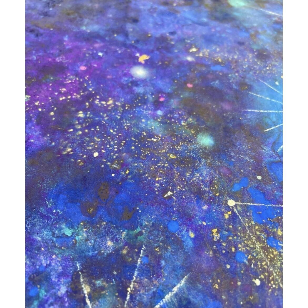 アクリルガッシュ/パステル/金箔/スワロフスキー/木製パネル