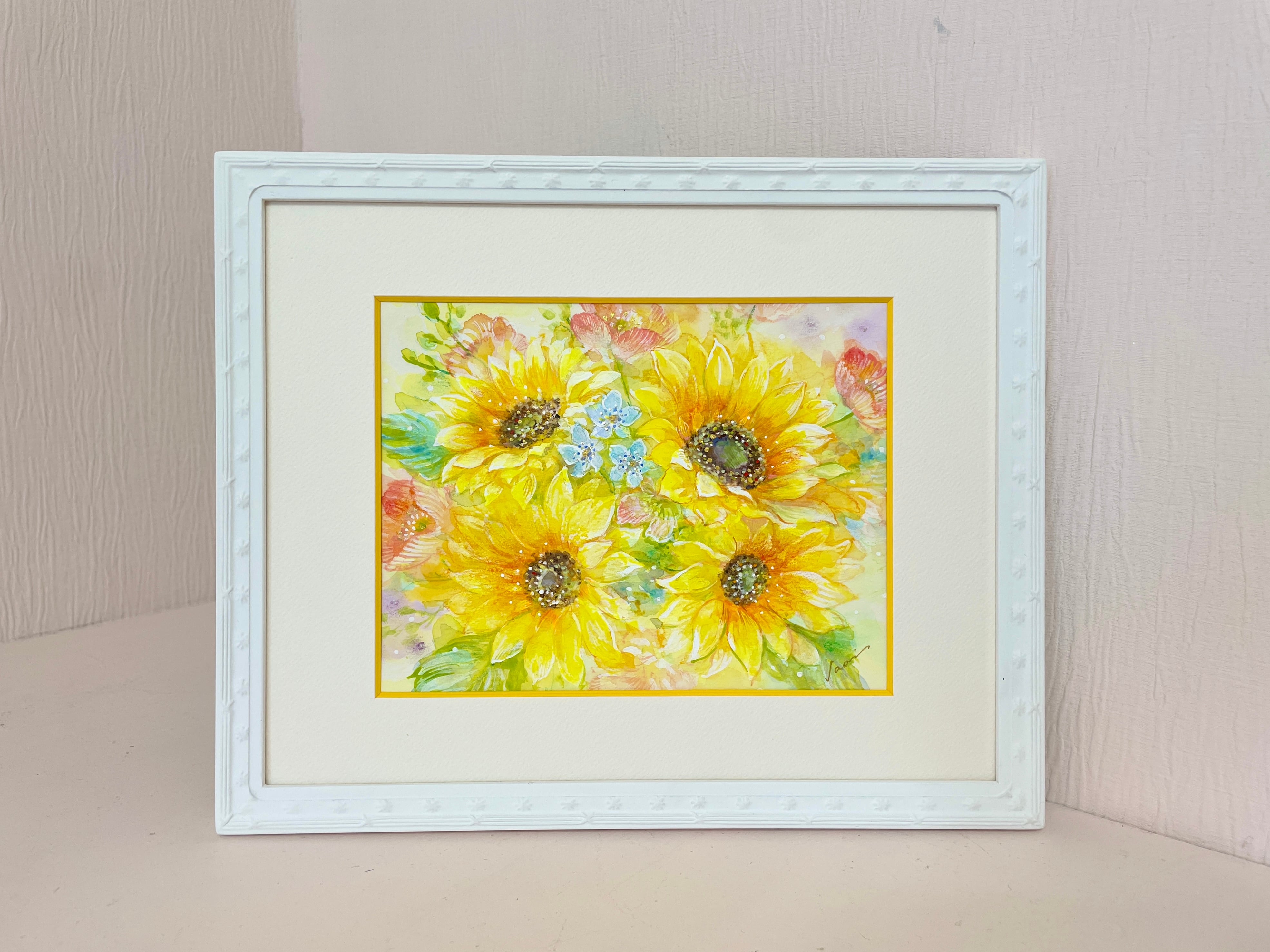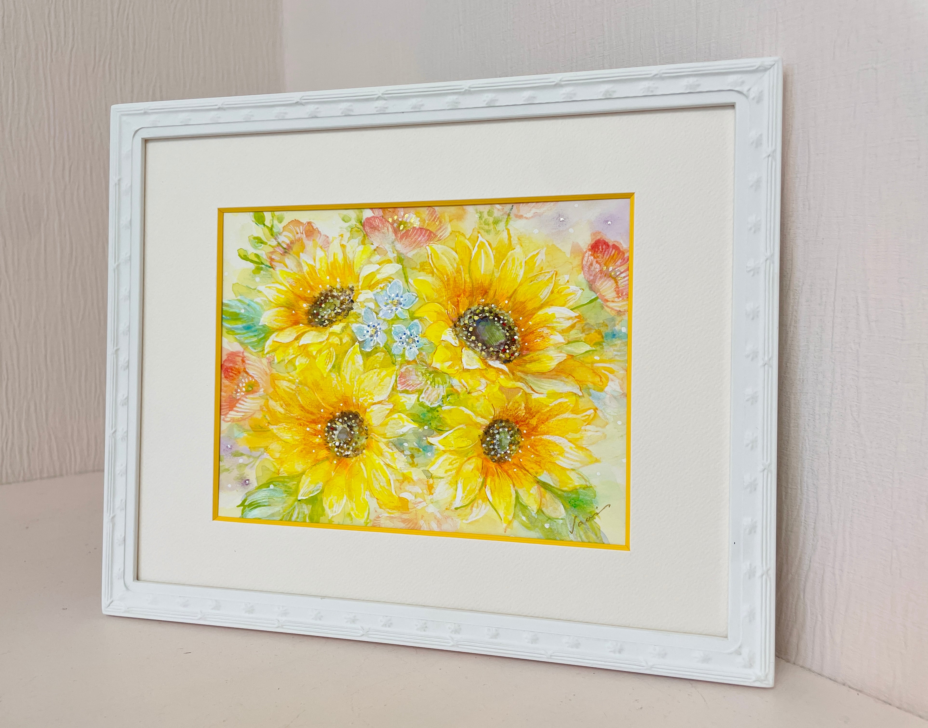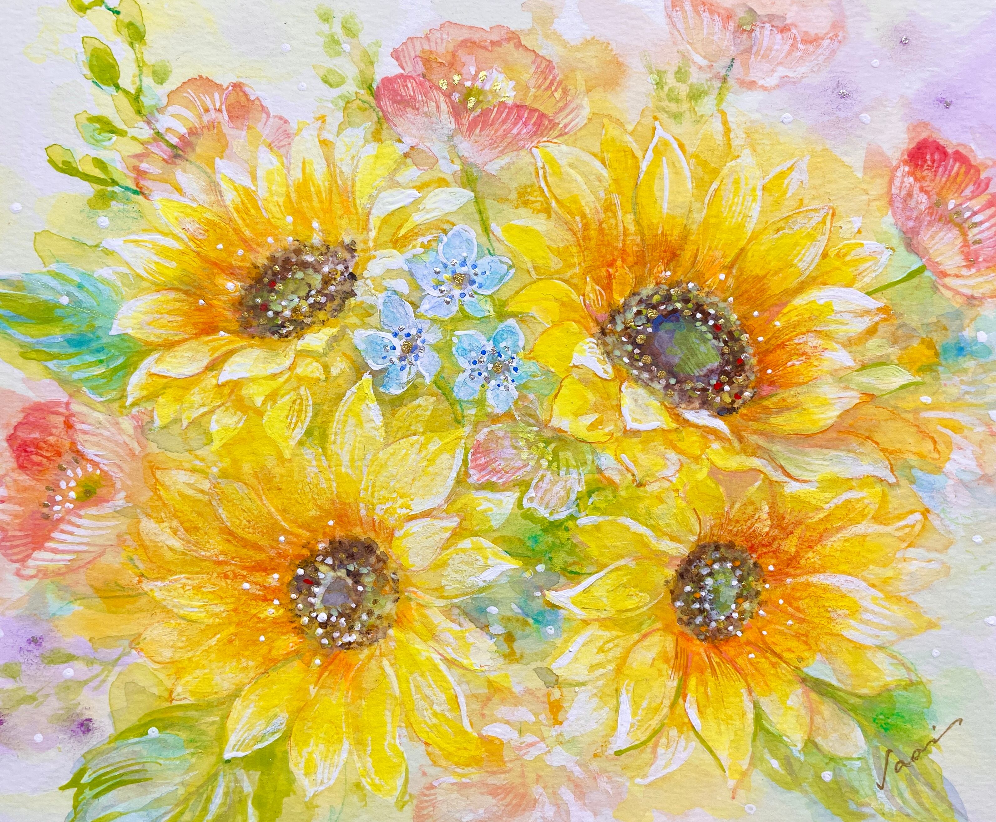 ひまわりのブーケを描いたaiiro。原画(一点もの)